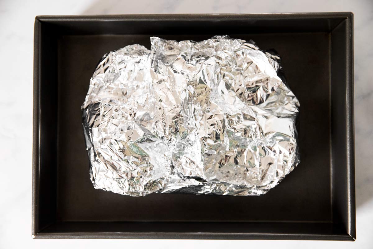 - If you want to avoid aluminum foil, just make the pork loin in a Dutch oven. You can brown the pork in the Dutch oven on the stove, then carefully spread with the compound butter and place the fresh herbs next to the pork in the pot. Close with the lid and roast in the oven as directed in the recipe.