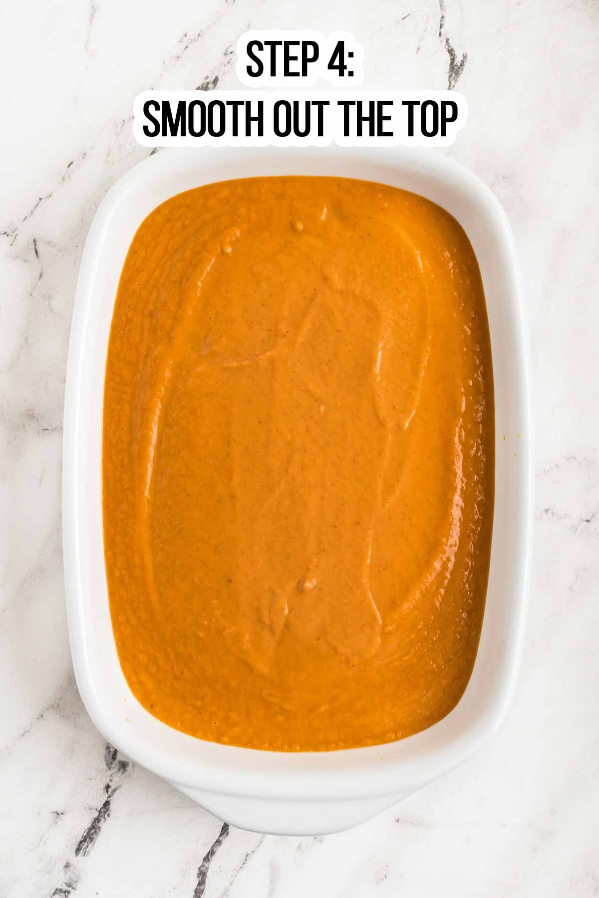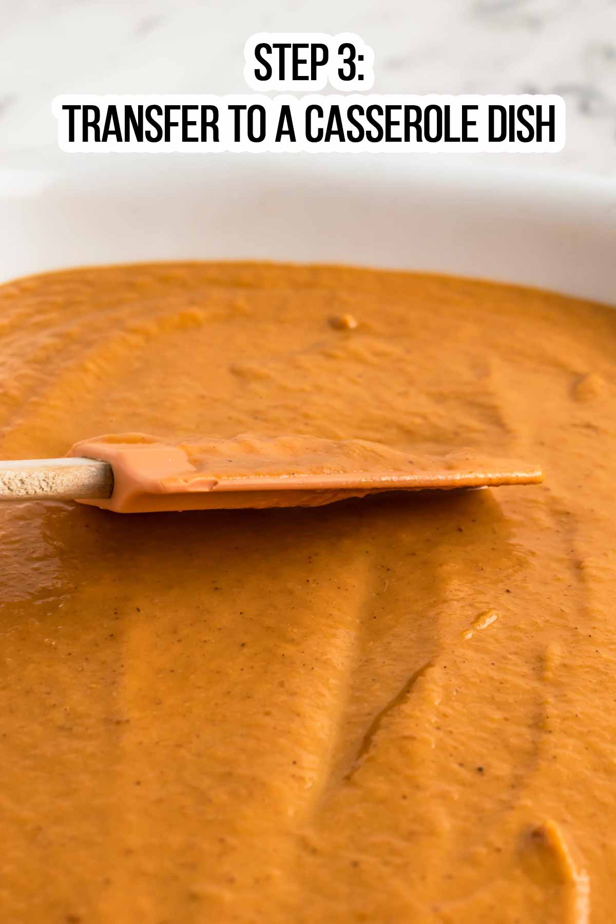 Once it’s ready, pour the mixture into your prepared baking dish and spread it out evenly with a spatula. Don’t stress if it’s not perfect; it’ll settle as it bakes.